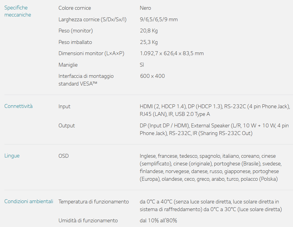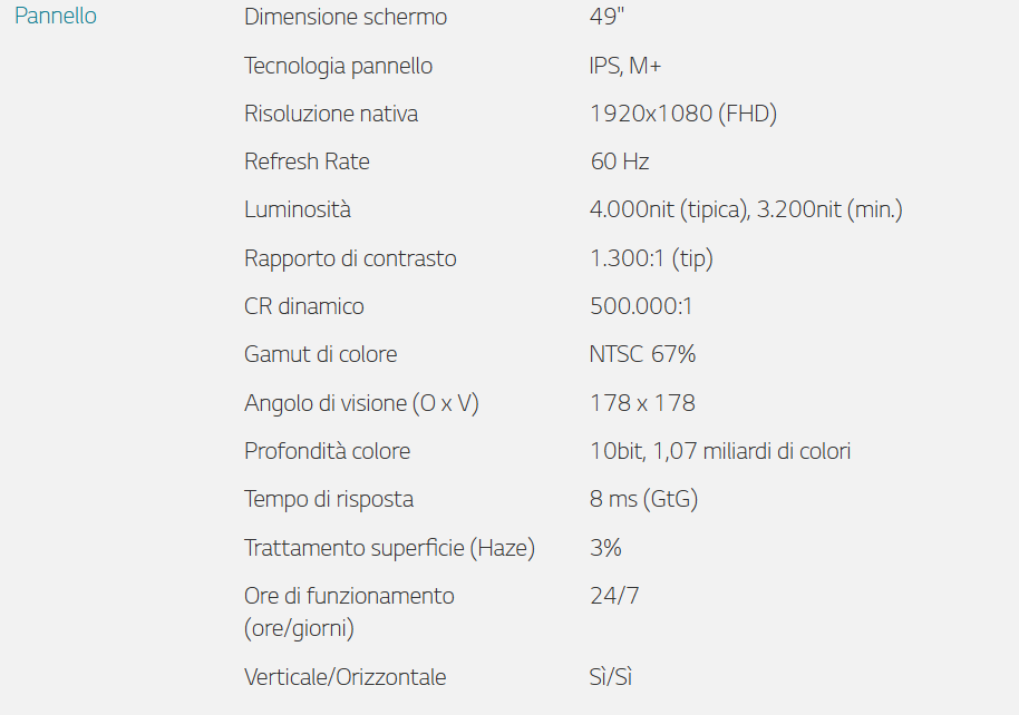 Schermo professionale LG 49’’ ad alta luminosità per vetrine